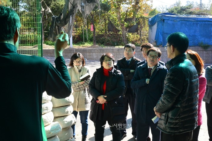 | ▲ 지역내 위치한 '노량진 환경지원센터'를 방문한 구의원들이 센터 관계자로부터 시설 관련 설명을 전달받고 있다. | ||