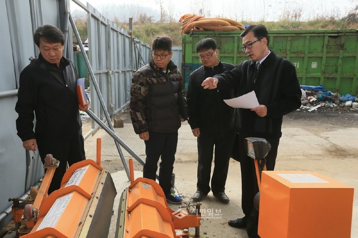 지난 24일 경기 고양시 덕양구는 겨울철 강설에 대비해 시민들의 생명과 재산을 보호하고 교통 혼란을 최소화하기 위해 지역내 도로제설 기지를 방문, 도로 제설대책 전반에 대한 강도 높은 현장점검을 실시했다. 사진은 현장을 방문한 관계자들이 제설재 및 장비를 살피고 있는 모습. (사진제공=고양시청)