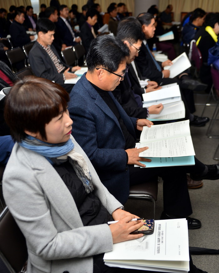 28일 오후 광주 서구 광주시청 3층 중회의실에서 시민 200여명이 참여한 가운데 '도시철도 2호선 관련 시민의견 청취 및 설명회'가 열렸다. 시민들이 관련 책자를 꼼꼼하게 살펴보고 있다.