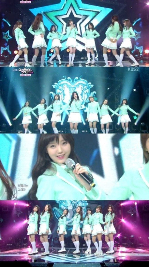 러블리즈는 28일 방송된 <뮤직뱅크>에서 데뷔곡 '캔디 젤리 러브'를 공연했다.