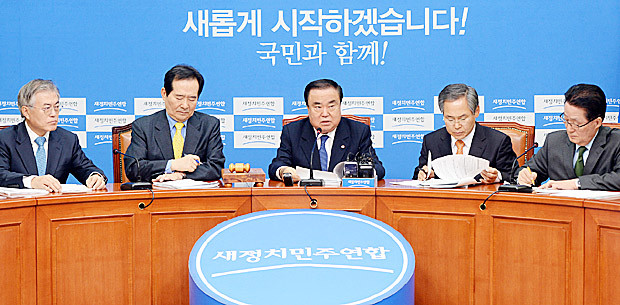 3일 오전 서울 여의도 국회 새정치민주연합 당대표실에서 비상대책위원회의가 열린 가운데 문희상 위원장(가운데)이 모두발언을 하고 있다.