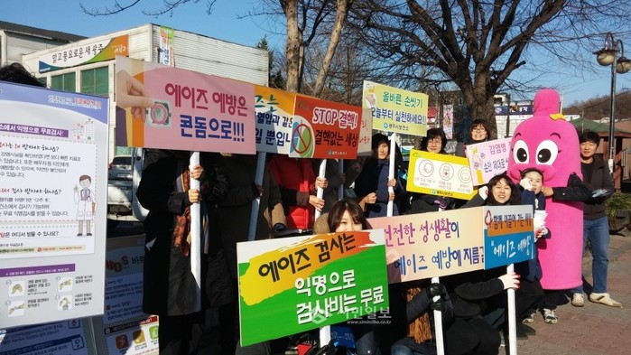 지난 2일 경기 광주시 보건소가 '제27회 세계 에이즈의 날'을 맞아 ‘감염 제로(ZERO)! 편견 제로(ZERO)! 사망 제로(ZERO)!'를 주제로 홍보물을 배포하고 에이즈 바로알기 패널 등을 통해 에이즈에 대한 경각심을 깨우고 편견을 바로잡는 캠페인을 실시했다. 사진은 팻말을 들고 홍보 중인 캠페인 참여자의 모습. (사진제공=광주시청)