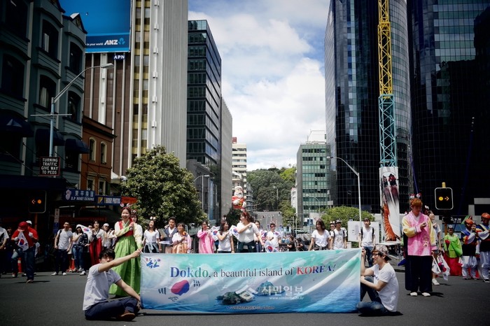 | ▲ 뉴질랜드 '독도 알리기 모임'이 오클랜드산타 퍼레이드에서 거리 행진을 펼치고 있다. | ||