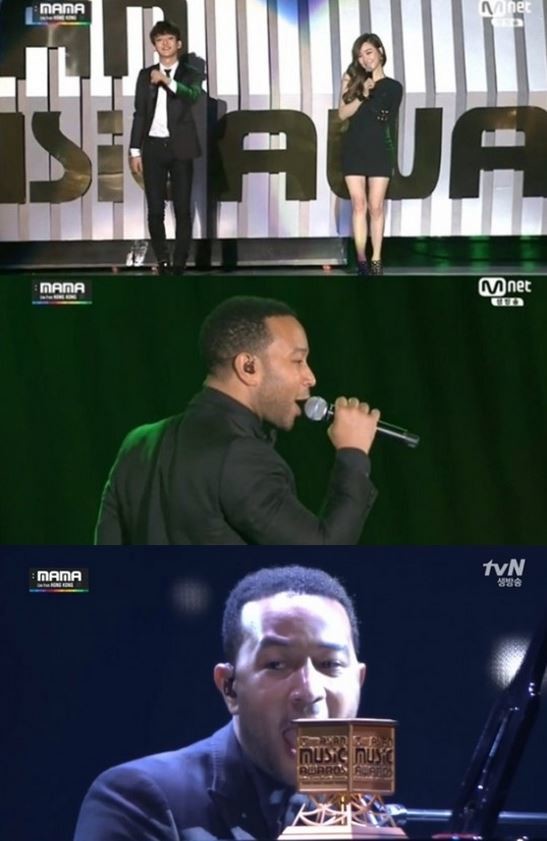 3일 홍콩에서 열린 '2014 엠넷 아시안 뮤직 어워즈(이하 2014 MAMA)'에서 존 레전드가 한국 가수들과 함께 국경과 세대를 초월하는 무대를 펼쳤다.