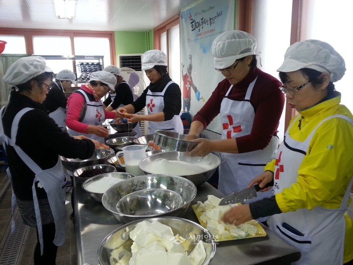 지난 3일 경기 의정부시 장암동 통장협의회 장암사랑봉사회가 함께 경기북부 희망나눔봉사센터에서 직접 빵을 만들어 다문화가정, 한부모가정 등 70여가구에 전달했다. 사진은 봉사자들이 이웃에 전달할 빵을 만드는 모습. (사진제공=의정부시청)