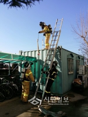 경북 구미소방서는 재난현장에서 신속하고 효율적인 현장활동 능력을 배양하고 각종 재난상황에 맞는 현장대응체계를 구축하기 위해 5일에 현장활동 직원 180명을 대상으로 '2014년 하반기 소방전술훈련평가'를 실시했다. 사진은 현장대원들이 훈련을 진행하고 있는 모습. (사진제공=구미소방서)