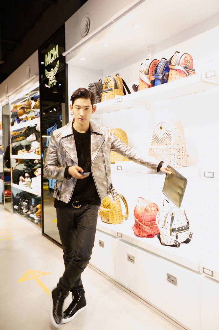 독일 럭셔리 브랜드 MCM이 5일 강남 코엑스 몰 <MCM LAB> 매장에서 플래그십 스토어 ‘MCM LAB’ 오픈 기념 파티행사를 연 가운데, 모델 박형섭이 매장을 둘러보며 모델 포스를 뽐내고 있다.