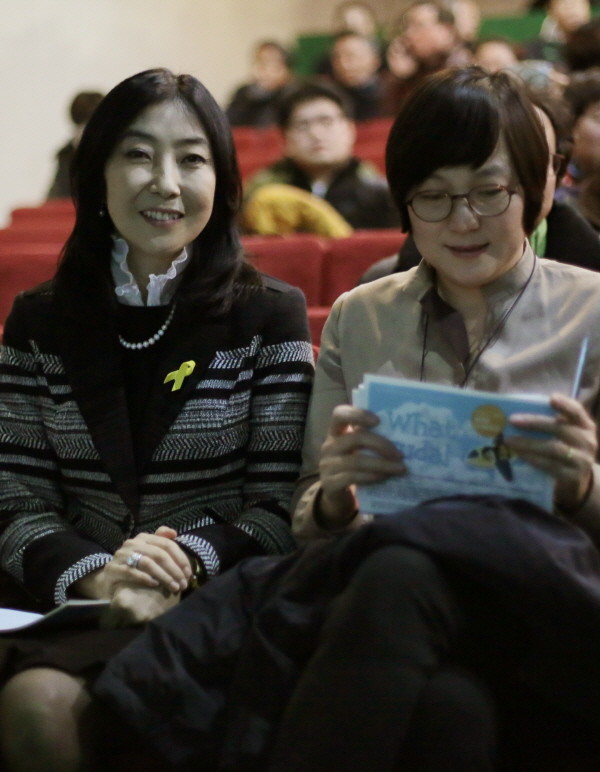 (사진위)9일 오후 신은미&황선 토크콘서트가 열리는 대구 중구 동성아트홀에서 신은미(왼쪽)씨와 황선씨가 콘서트에 앞서 사진촬영을하고 있다.