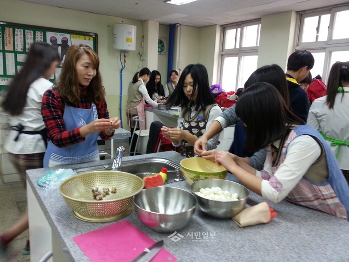 최근 경기 부천시 원미구 상1동 부인중학교 학부모회와 학생 등 봉사자들이 지역내 저소득층 가구를 대상으로 제공하는 맞춤형 복지서비스의 일환으로 밑반찬 4종을 만들어 전달했다. 사진은 부인중학교 가사실에서 반찬을 만드는 봉사자들의 모습. (사진제공=부천시청)