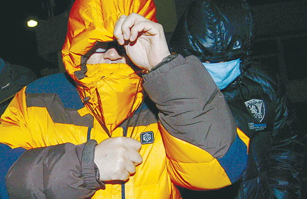 청와대 문건을 외부로 유출한 혐의(공무상비밀누설)로 청구된 구속영장이 기각된 서울경찰청 정보1분실 소속 최모(45) 경위와 한모(44) 경위가 12일 새벽 경기 의왕시 포일동 서울구치소 앞에서 기다리던 취재진을 피해 달아나고 있다.