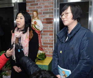| ▲ 재미동포 신은미(왼쪽)씨와 황선 전 민주노동당 부대변인이 10일 전북 익산시 신동성당에서 토크 콘서트에 앞서 기자회견을 갖고 있다. | ||