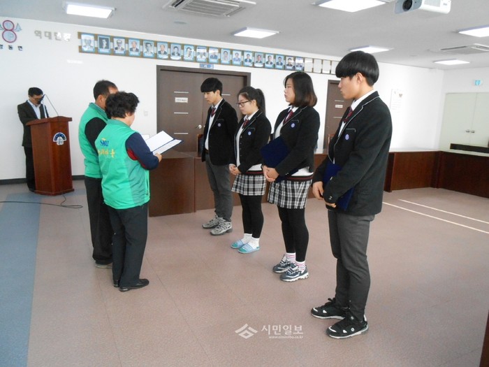지난 12일 경기 양평군 양동면 새마을회가 양동면사무소에서 장학금 수여식을 열고 올 한 해 동안 전개한 활동을 통해 얻은 수익금으로 조성한 장학금을 지역내 성적 우수자, 저소득층 자녀 7명에게 전달했다. 사진은 장학금 수여식에 참여한 학생들과 새마을회 관계자들의 모습.(사진제공=양평군청)