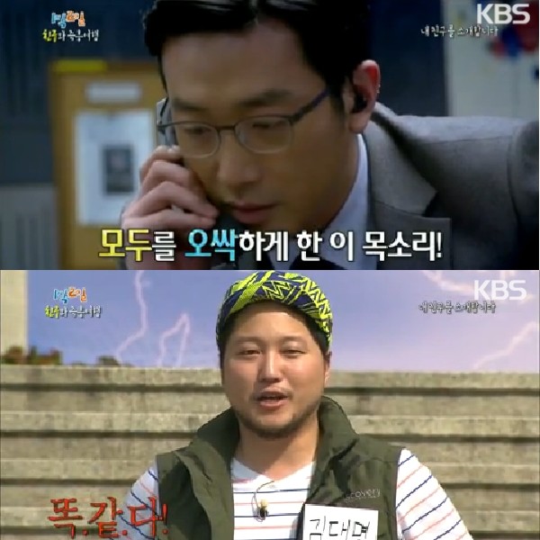 배역이 아닌 예능에 출연한 이력도 화제가 됐다. 김대명은 앞서 1박2일에서 배우 주원의 대학 선배로 나왔었다.
