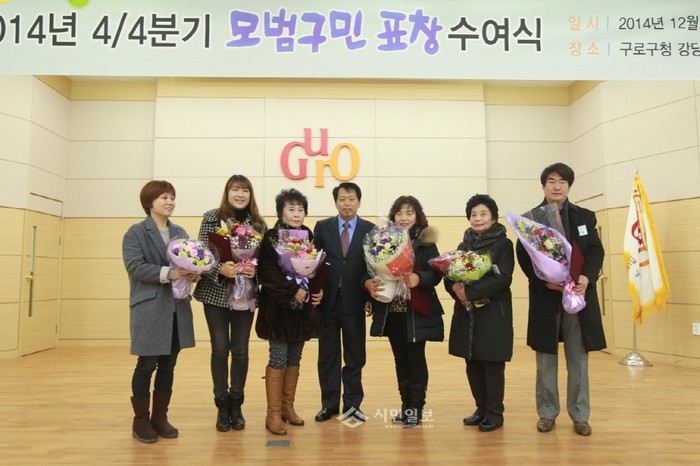 19일 서울 구로구가 지역사회 발전을 위해 봉사하고 구정에 적극 참여한 주민들을 대상으로 모범구민을 선정해 6개분야 176명에게 표창장을 수여했다. 사진은 수여식에 참여한 이성 구청장(가운데)와 수상자들의 모습.(사진제공=구로구청)