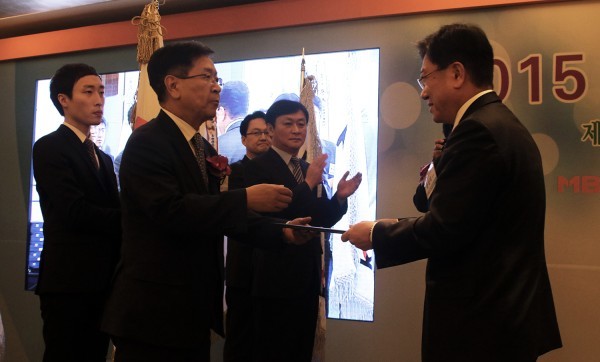 | ▲ 대웅제약 이종욱 사장이 ‘제11회 대한민국 신성장 경영대상’에서 산업통상자원부 윤상직 장관으로부터 과학기술부문 국무총리 표창을 수상하고 있다.(사진제공=대웅제약) | ||