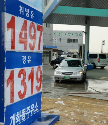 23일 서울 강서구 개화동 개화동주유소(현대오일뱅크)에서 휘발유를 리터(ℓ) 당 1497원에 판매하고 있다. 이 주유소의 경유 가격은 리터당 1319원이다.