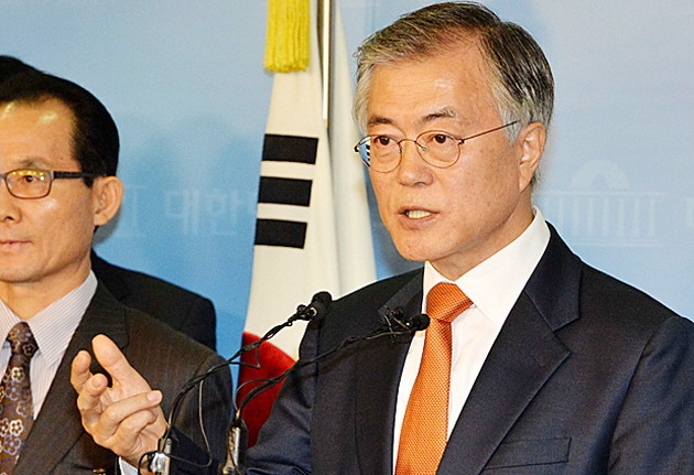 새정치민주연합 문재인 의원이 29일 오전 서울 여의도 국회 정론관에서 당 살리는데 정치생명을 걸 것이라며 당 대표 출마선언을 하고 있다.