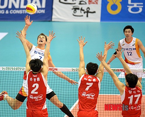 한국전력은 29일 수원실내체육관에서 열린 NH농협 2014~2015 V-리그 남자부 LIG손해보험과의 경기에서 3-0(25-19 25-18 25-23)으로 이겼다.