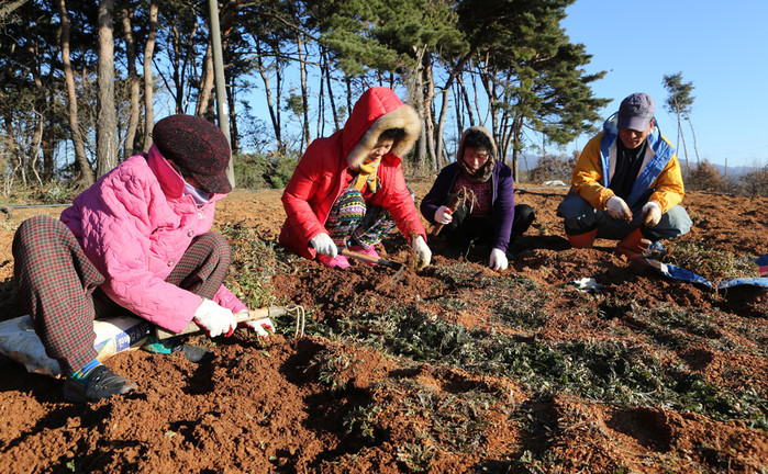 7일 충남 서산시 음암면 부장리에서 아낙네들이 겨울철 입맛을 돋우는 냉이를 수확하고 있다.