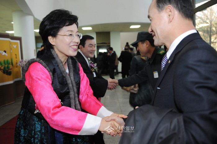 지난 9일 박춘희 서울 송파구청장이 구민회관에서 지역구민 1000여명을 대상으로 2015년 희망을 기원하기 위해 개최한 '2015년 신년인사회'에서 참석한 주민들의 손을 붙잡고 새해인사와 덕담을 나누고 있다. (사진제공=송파구청)