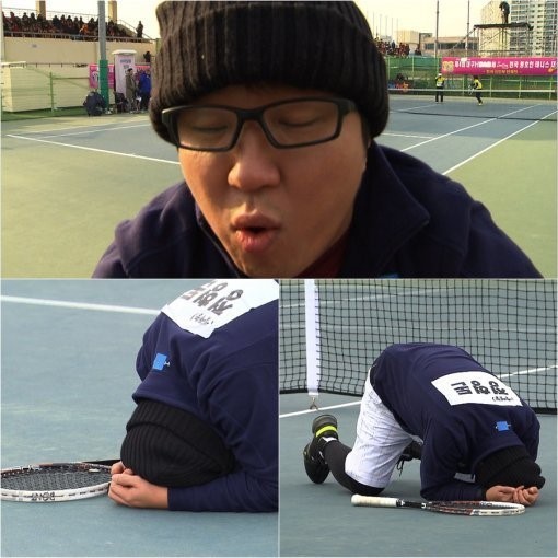특히 정형돈은 경기 중 코트에 고정돼 있던 카메라에 얼굴을 부딪히는가 하면 코트에 엎드려 절규, 급기야는 코트에 주저앉아 오열하고 마는 '굴욕 3종세트'를 선보여 시청자의 궁금증을 자아내고 있다.
