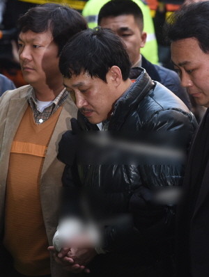 19일 오전 경기 안산 주택가 인질살인 사건의 피의자 김상훈(46·무직)이 현장검증을 위해 사건현장으로 향하고 있다.