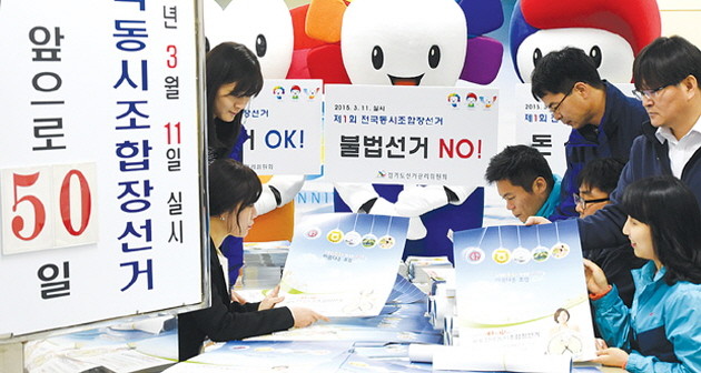 제1회 전국동시조합장 선거(농협, 수협, 산림조합장)를 50일 앞둔 20일 오전 경기 수원 경기도선거관리위원회에서 직원들이 선거에 사용할 홍보포스터, 리플렛 등을 준비하고 있다. 전국동시조합장 선거는 3월11일 실시될 예정이다.