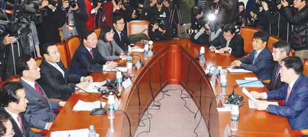 소득세 연말정산 관련 긴급 당정회의가 21일 오후 서울 여의도 국회 새누리당 원내대표실에서 열린 가운데 최경환 경제부총리가 모두발언을 하고 있다.