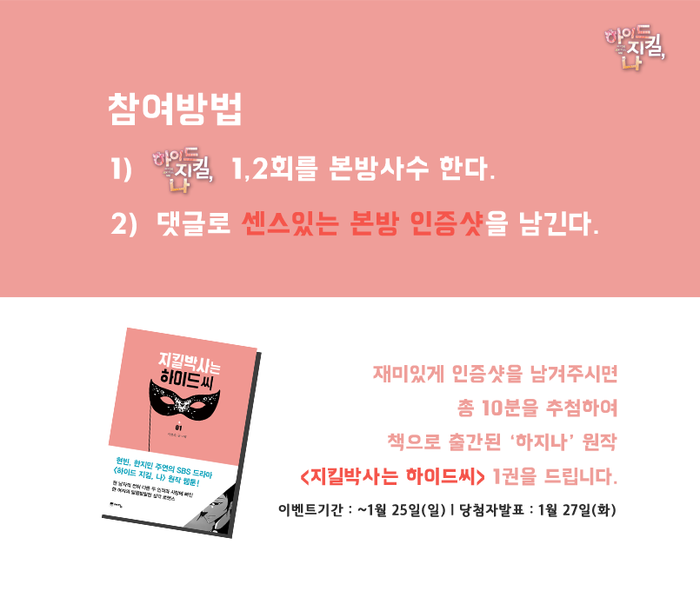또 같은날 시청자들의 본방사수를 독려하는 '이벤트'도 공지했다. 해당 이벤트는 하지나 1·2회 본방사수후 댓글로 센스있는 본방 인증샷을 남긴 시청자 가운데 10명을 추첨해 책으로 출간된 하지나 원작 '1권'을 선물하는 행사다.