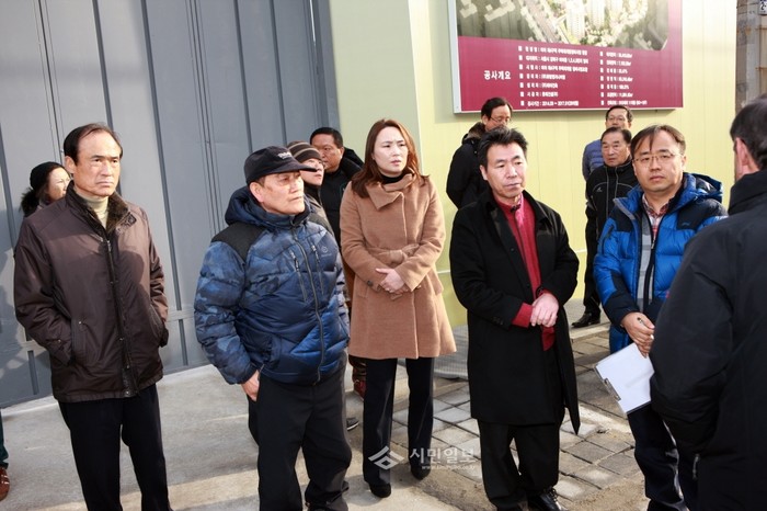 지난 20일 서울 강북구의회 민원처리 관련 특별위원회는 미아4재개발구역 ‘꿈의숲 롯데캐슬아파트’ 공사현장을 방문해 출입구 옆 횡단보도 이전과 관련한 주민들의 의견을 청취했다. 사진은 특별위원인 박문수 의원(오른쪽 두번째)과 강선경 의원(가운데)이 현장을 방문하고 있는 모습. (사진제공=강북구의회)