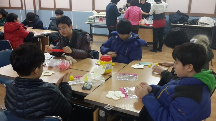 인천 남동구가 지난 21일 겨울방학을 맞은 청소년들을 대상으로 '청소년 자원봉사단'을 운영했다. 교육은 자원봉사 기초 교육, 점핑클레이 생활용품 만들기 등의 다양한 체험 활동으로 구성됐다. 사진은 청소년 자원봉사단들이 점핑클레이 생활용품 만들기 체험을 하는 모습. (사진제공=남동구청)