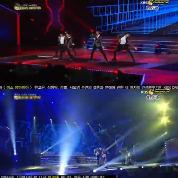 이와 함께 일부 팬들은 EXO 무대에서도 리프트가 내려가 있어 무대 위에 구멍이 난 상태로 퍼포먼스를 펼쳤다는 주장도 제기됐다.