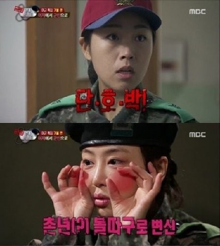 이에 소대장은 "그게 꼭 필요한가. 선크림만 허용한다"고 하자 강예원은 "찬바람을 얼굴에 쐬면 얼굴이 빨개진다"며 사정했지만 소대장은 단호히 "안 된다"고 말했다.