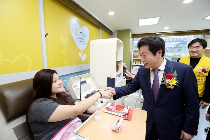 헌혈자 격려하는 정찬민 용인시장
