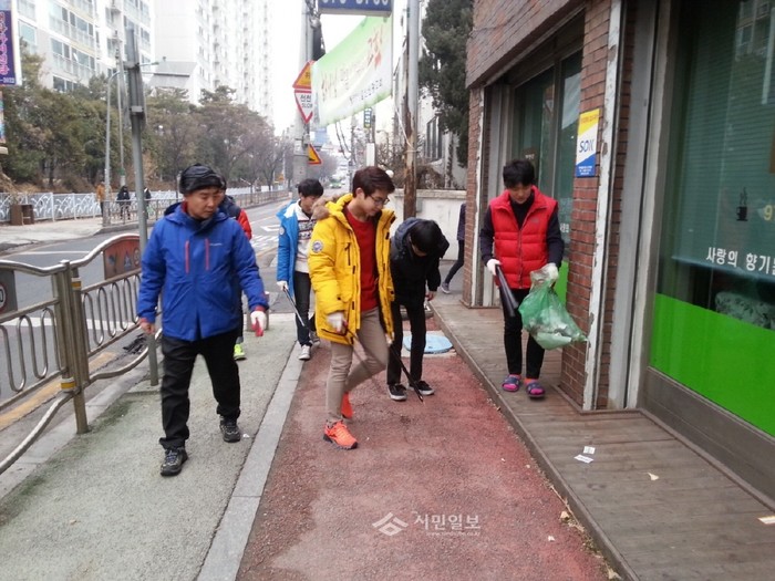 최근 경기 고양시 일산서구 일산1동 주민자치위원회가 학생 자원봉사자 40여명, 주민자치위원 15명이 참여해 주요 도로변과 이면도로, 다중이용시설을 중심으로 쓰레기를 수거하고 전단지 등의 불법광고물을 제거하는 환경정화활동을 실시했다. 사진은 쓰레기를 수거 중인 봉사자들의 모습. (사진제공=고양시청