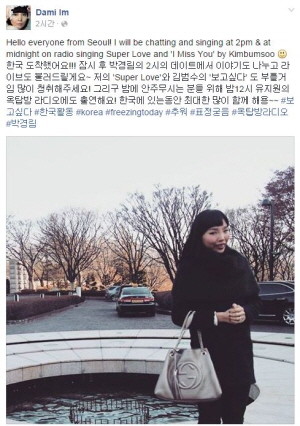 '호주 폴포츠'로 불리는 가수 임다미가 고국을 방문한 가운데 라디오 출연 소식을 알렸다.