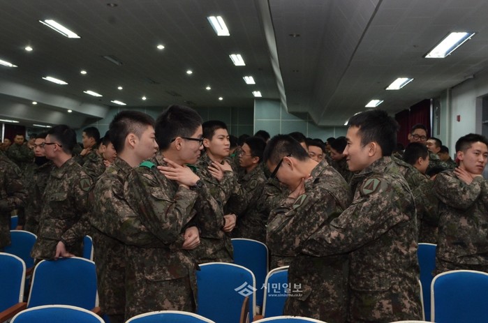 지난 28일 서울 서대문소방서가 수도방위사령부 소속 간부 및 장병 600여명을 대상으로 북악산 등산객이나 장병들에게 골절, 심정지 등의 사고가 발생했을 때 대응능력을 키우기 위한 군부대 방문 맞춤형 소방안전·심폐소생술교육을 실시했다. 사진은 강사의 지도를 받아 응급처치법을 배우는 장병들의 모습.(사진제공=서대문구청)