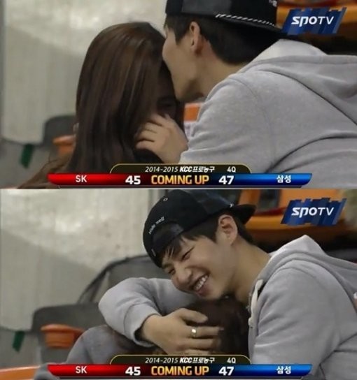 지난 29일 오후 서울 잠실학생체육관에서 열린 2014-2015 프로농구 서울 삼성과 서울 SK의 경기장에는 MBC '우리 결혼했어요'의 김소은-송재림 커플이 나란히 등장해 경기를 관람했다.