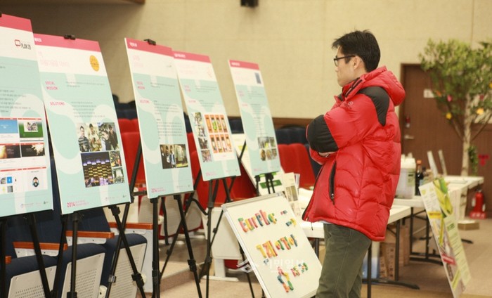 서울 관악구가 최근 구청 강당에서 '사회적기업 창업보육센터 제4기 창업팀 졸업발표회'를 개최한 가운데 이날 졸업발표회에 참석한 주민이 전시작품을 감상하고 있다. (사진제공=관악구청)