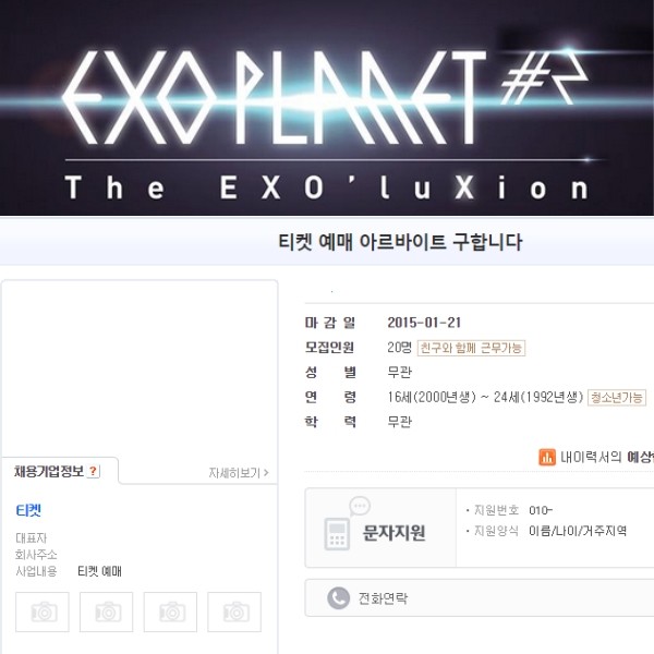 이같은 상황에서 일부 '장사꾼'들이 이른바 티켓팅 알바를 고용했다는 주장이 제기돼 충격을 주고 있다. 이는 일부 '알바구인' 사이트에 '티켓 아르바이트 구합니다'라는 글이 게시되면서 불거졌다. 알바내용은 '콘서트 예매', 고용인원 20명이다. 또 친구를 대동한 채 티켓 예매에 성공하면 인센티브까지 제공한다는 내용도 적혀있어 눈길을 끈다.