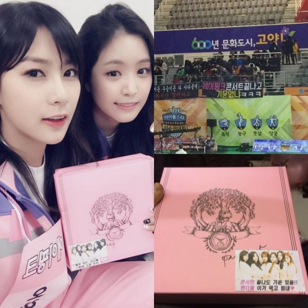 한편, 에이핑크는 아육대 촬영이 끝난 후 공식 SNS계정을 통해 "팬더들~~ 저희가 준비한 요거!! 맛있게 잘 먹었나요? 집에 조심히 들어가요^^ 우리 없는 동안에도 자리 지켜줘서 너무 고마워요"라고 글과 함께 인증샷을 남겼다.
