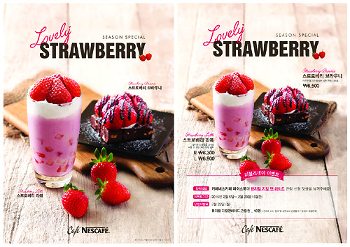 카페네스카페 마케팅 담당자는 “제철과일인 딸기의 신선함을 고객들에게 그대로 전달하기 위해 생딸기를 이용한 음료와 디저트를 개발하게 됐다.”고 말했다.
