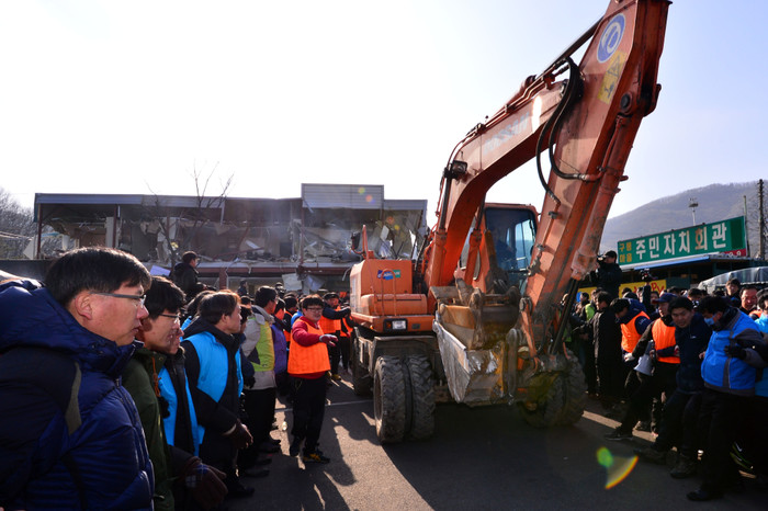 [시민일보=이대우 기자] 서울 강남구청이 6일 개발사업을 앞두고 있는 무허가 판자촌 구룡마을에 대해 행정대집행에 나섰지만 구룡마을 주민자치회관에 대한 행정대집행을 중단하라는 법원의 결정에 따라 강남구청이 철거 작업 시작 2시간 반 만에 이를 중단했다.