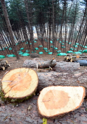 '소나무 에이즈'로 불리는 재선충병에 감염된 소나무를 잘라 훈증처리를 하고 있는 훈증포가 경기 광주 초월읍의 한 야산에 10여개가 몰려 있어 공동묘지를 연상케 하고 있다. 경기도는 지난해 5월부터 소나무 재선충병에 감염된 4만752그루 중 1만3000여그루는 잘라냈고, 다음달까지 2만8000여그루에 대해 방제 작업을 벌일 예정이라고 밝혔다.