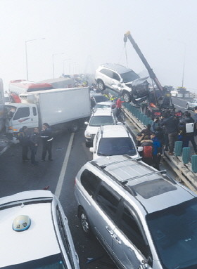 [인천=문찬식 기자]11일 오전 9시45분께 영종대교에서 105중 추돌사고가 발생해 65명의 사상자가 발생했다.