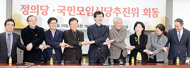 정의당 천호선 대표, 심상정 원내대표는 지난 15일 오전 국회 간담회실에서 국민모임신당추진위원회 김세균 공동추진위원장 등 지도부와 첫 회동을 가졌다.