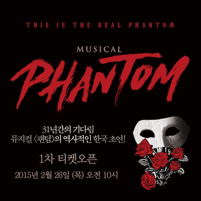 뮤지컬 '팬텀'은 오는 4월28일~7월26일 서울 충무아트홀 대극장에서 공연되며 오는 26일 1차 티켓 오픈을 앞두고 있다.