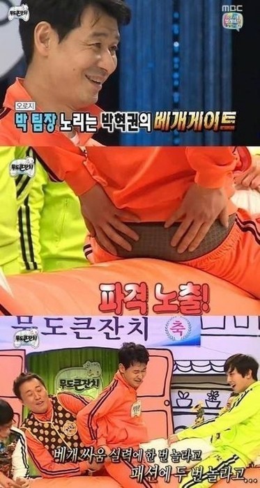 배우 박혁권은 지난 21일 오후 6시25분 방송된 MBC '무한도전' 설 특집 '무도큰잔치'에 출연해 정용화를 상대로 통나무 베개 싸움 게임을 했다.