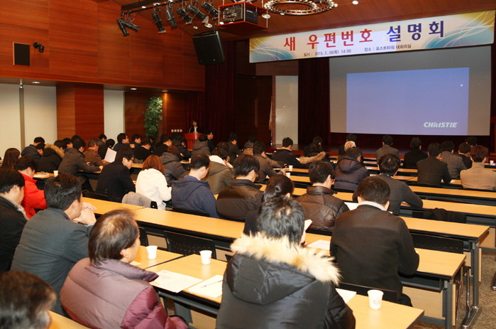 서울지방우정청이 최근 서울 중구 포스트타워 10층 대회의실에서 우편물 다량 발송업체를 대상으로 오는 8월1일부터 시행되는 새 우편번호 설명회를 개최했다. 설명회에는 DM월드, 대원기획 등 서울·경인지역에서 우편물을 다량으로 발송하는 66개 업체가 참석했다.