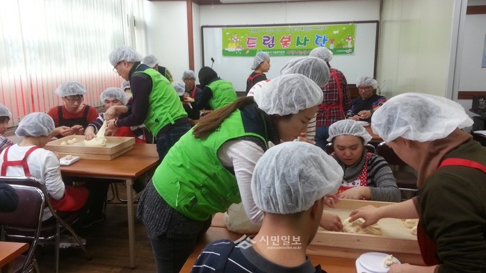 경기 의정부시시설관리공단 사랑나눔봉사단은 최근 장애인 보호작업장 '솔빛터'와 함께 '우정나눔' 활동의 일환으로 직접 사랑의 찐방을 만들어 중증장애인 생활시설 등에 전달하는 봉사활동을 펼쳤다. (사진제공=의정부시설관리공단)